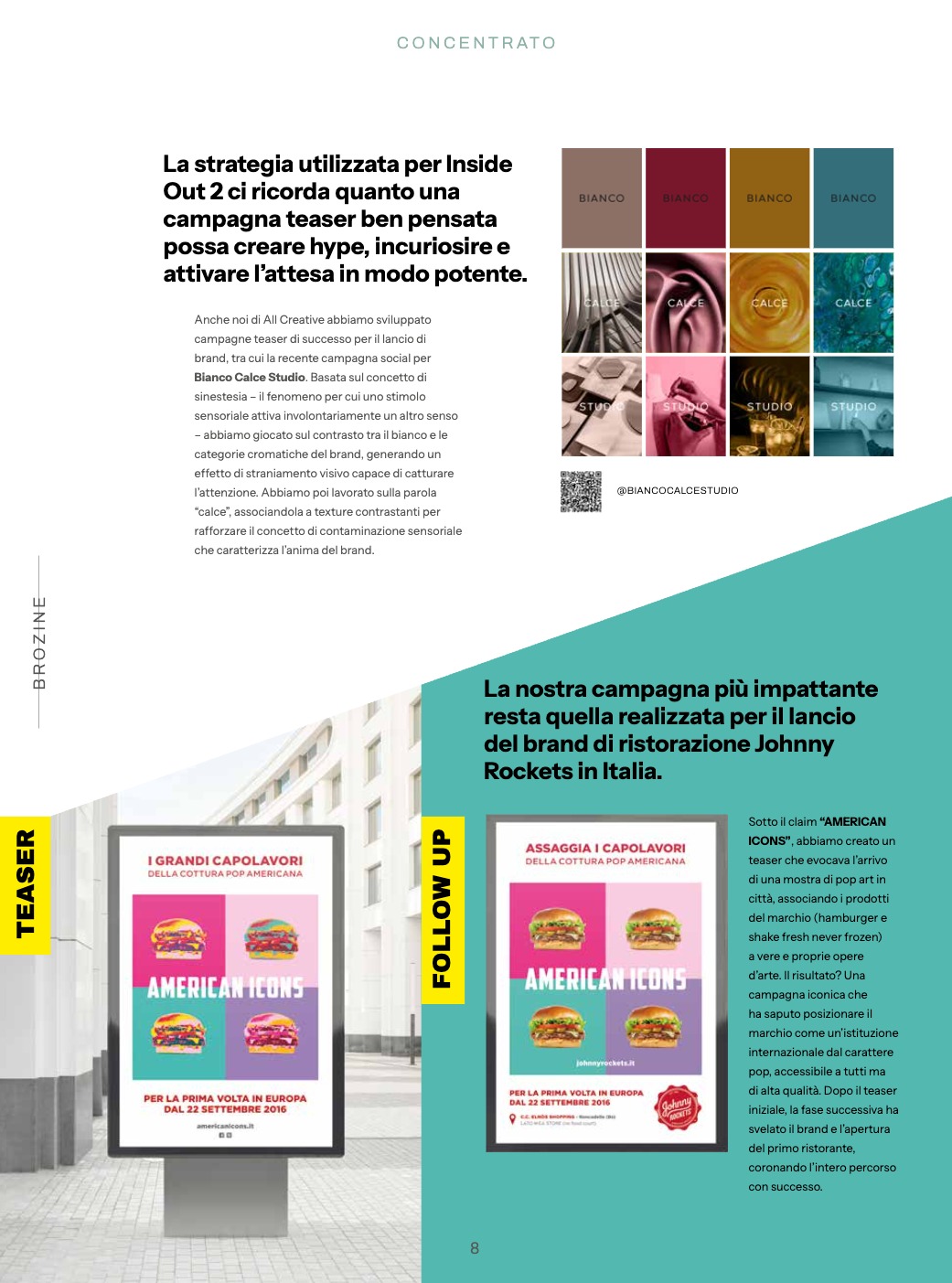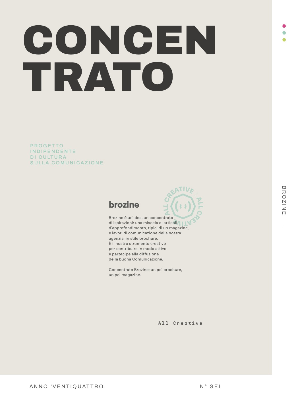 Un concentrato di idee e cultura della comunicazione, ottenuto mescolando grafiche, immagini, layout e argomenti di interesse, a lavori di comunicazione realizzati da ALL Creative.